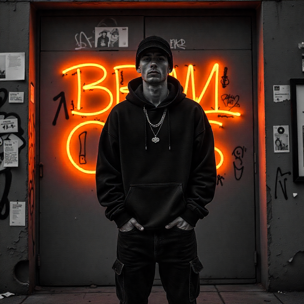 Every piece we create carries the grain of the street: raw textures, rebellious energy, and stories told in faded paint and torn posters. Our inspiration comes from late-night walks, freestyle cyphers, moody skylines, and the pulse of youth moving against the current.